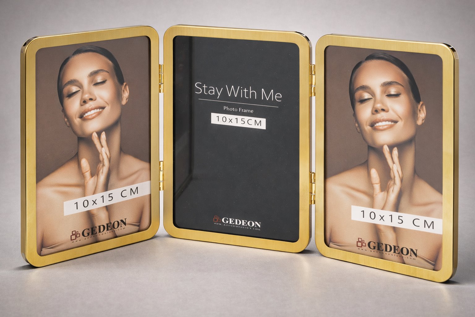 Metalowa ramka składana GEDEON MF104G/3 na 3 zdjęcia 10x15 cm