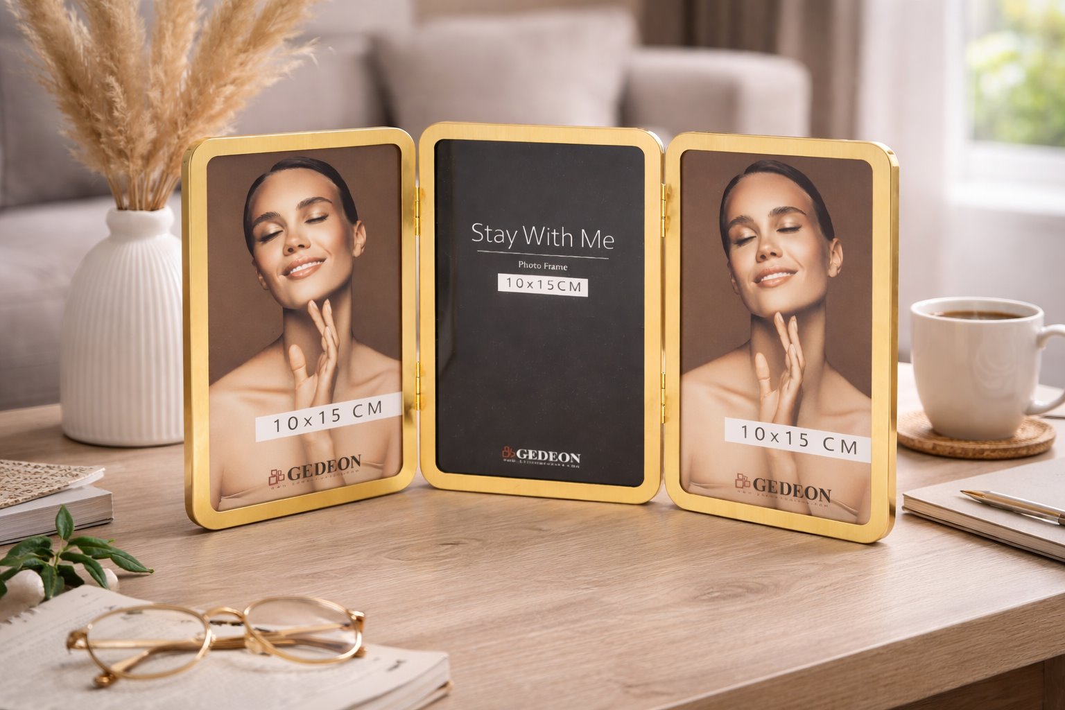 Minimalistyczny design ramki GEDEON MF104G/3 harmonizuje zarówno z nowoczesnymi, jak i klasycznymi wnętrzami. Jej trójdzielna forma jest funkcjonalna – pozwala na stworzenie małej galerii z trzech powiązanych ze sobą ujęć. Kompaktowe wymiary po złożeniu ułatwiają przechowywanie i transport. Jest to praktyczny element dekoracyjny, który pozwala wyeksponować cenne fotografie w stylowy sposób.